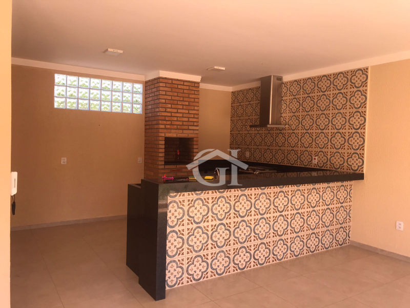 - Área de churrasqueira com bancada de pedra e banheiro;