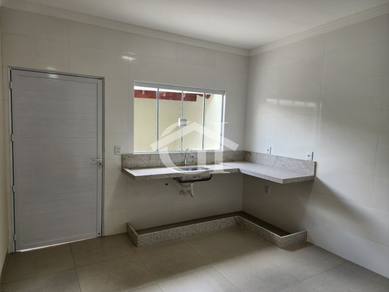 Casa nova, com fino acabamento, pronta para morar! Sala com pé direito alto, 02 quartos sendo 01 suíte, escritório, que também pode ser utilizado como um terceiro quarto, banheiro social e cozinha! Area externa, com parte coberta com pia, lavanderia fechada e lavabo!