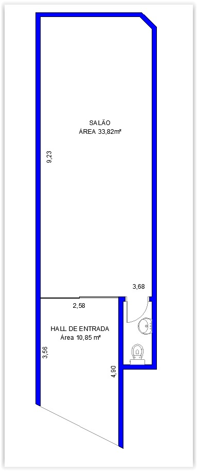Salão com área aproximada de 34,00m² 2 01 banheiro.